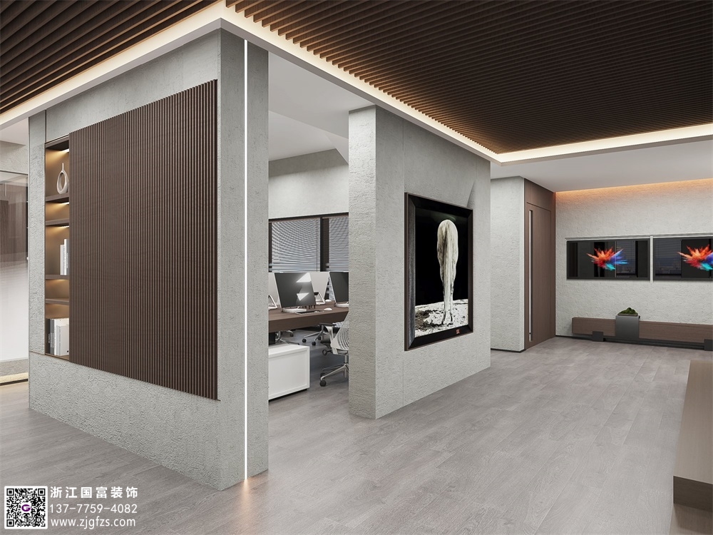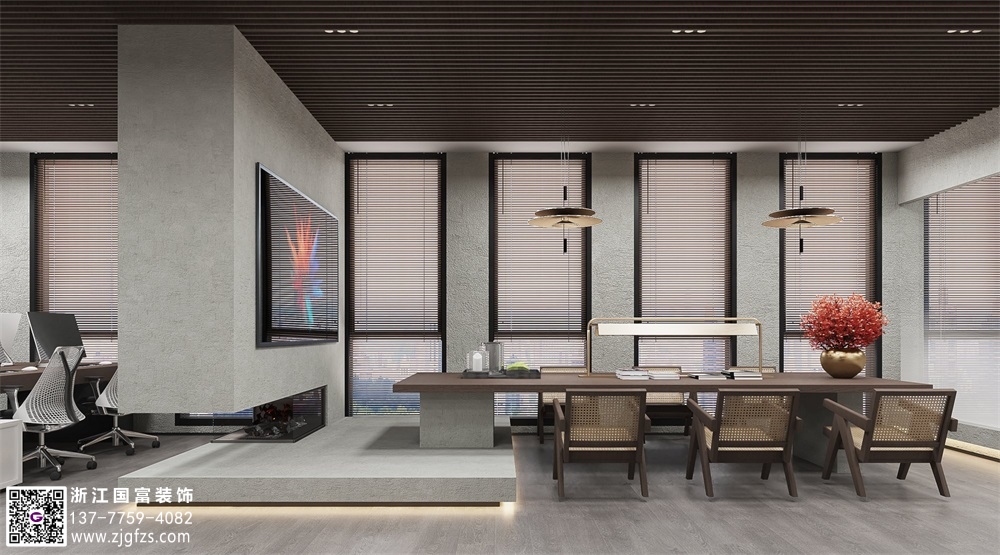 水泥極簡風辦公室裝修設(shè)計效果圖